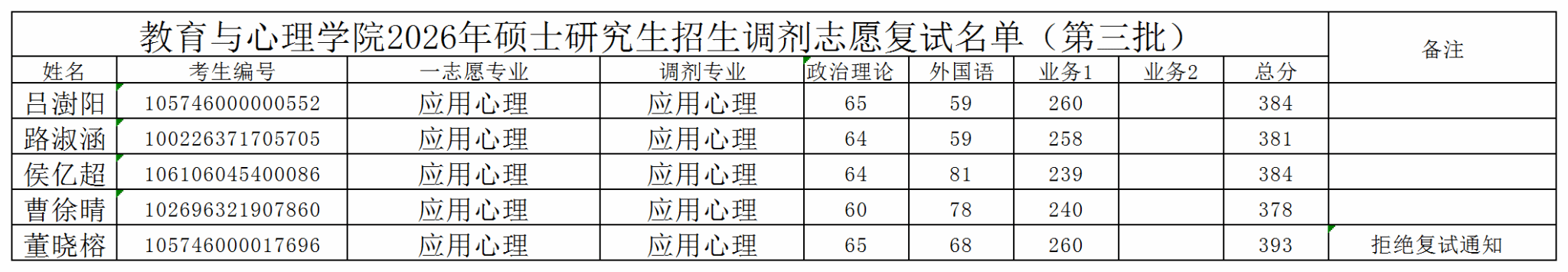 上一条:闽南师范大学教育与心理学院2026年硕士研究生入学考试结果公布(调剂第三批)