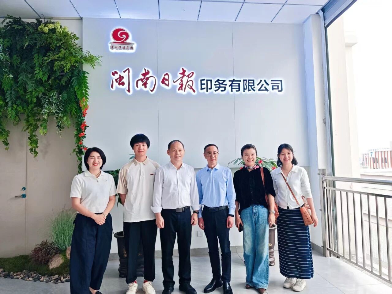 在闽南日报(漳州)印务有限公司,董事长黄建东、副总经理陈艺敏等带领我院一行实地参观,对企业规模、业务范围、产业特色等方面进行详细介绍。随后,与我院就媒介素养教育、实习实践基地建设、"教育+传媒"复合型人才培养等进行了交流探讨。